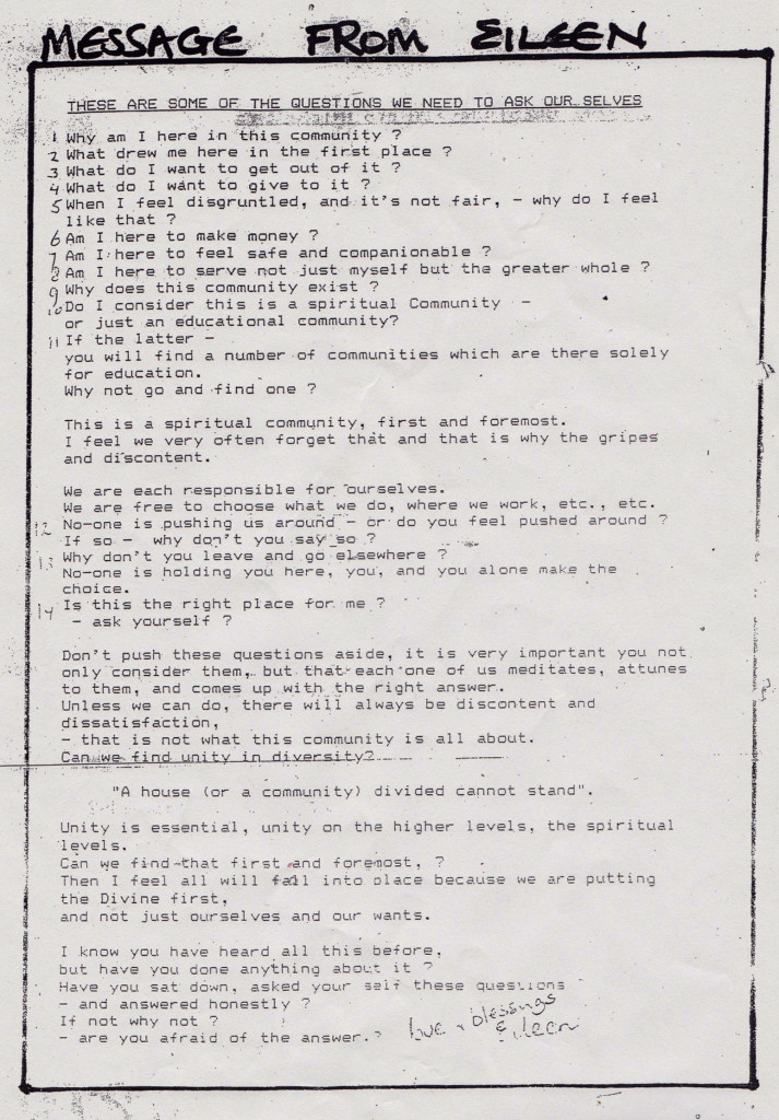 Some thoughts on what implanted and fixed Findhorn Ecovillage as a community in the view of its founders; and may they further enlighten our path through 2018.